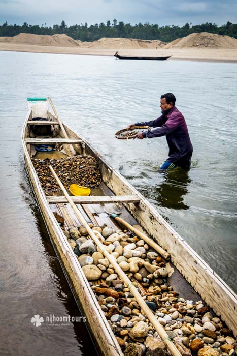 - Pick-up at 9.00 H from hotel, and a scenic drive toward Jaflong (58 km, 02 hrs). Here you’ll pass your time idly enjoying the beauty of Jaflong. You’ll get an opportunity to photograph the stone collection activities on the river where they collect stones manually and take them into crushers, which is highly photogenic. We will take you to the river on a local boat to photograph the stone collecting activities.